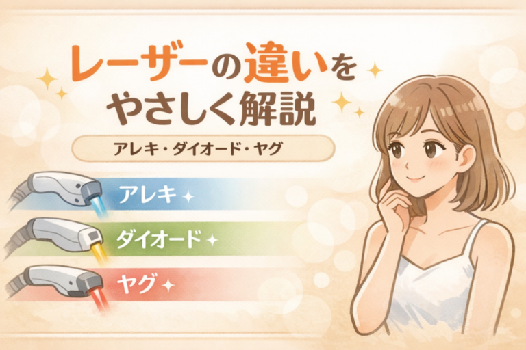 【初心者向け】医療脱毛と脱毛サロンの違いを徹底比較|どっちが自分に合う? 「医療脱毛と脱毛サロン、どっちがいいの?」 初めて脱毛を検討する人が必ずぶつかる疑問です。 結論から言うと、 ・早く終わらせたい/効果をしっかり出したい → 医療脱毛 ・痛みが不安/初期費用を抑えたい → 脱毛サロン この記事では、初心者でも迷わず選べるように、両者の違いをわかりやすく解説します。 医療脱毛と脱 […]