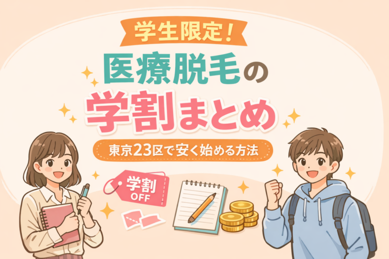 ✔ この記事でわかること 東京23区で使える「学割・初回割引」がある医療脱毛クリニック 全身・VIO・顔の料金相場と、どれくらい安くなるか 学生・20代が損しないための選び方 料金比較記事(⑧)との連携:相場と比較して“本当に安いか”判断できる 1. 東京23区で医療脱毛を安く始めるなら「学割・初回割」が最強 学生・20代は、医療脱毛を始めるベストタイミングです。理由はシンプルで、割引の種類が最も […]